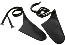 Üblicherweise wird der Lederfingerling mit einem schnurartigen Band am Handgelenk befestigt.